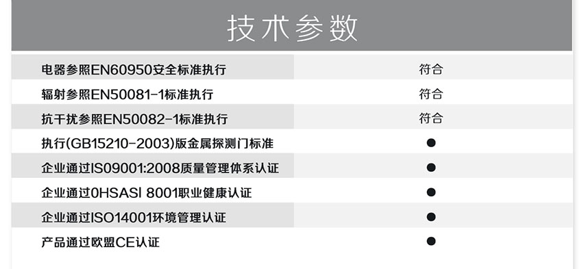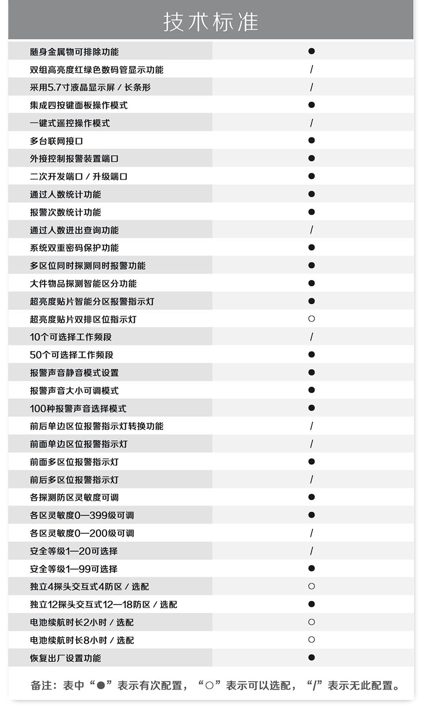 HC-TY300D金屬探測門(橫梁式)感應快、探測準、靈敏度高、抗干擾強、高穩定性,電源設計在主機頂端,防水防潮,非常人性化;能滿足各行業用戶需求。此款安檢門嚴格執行國家《GB15210-2003通過式金屬探測門技術通用技術規范》;。